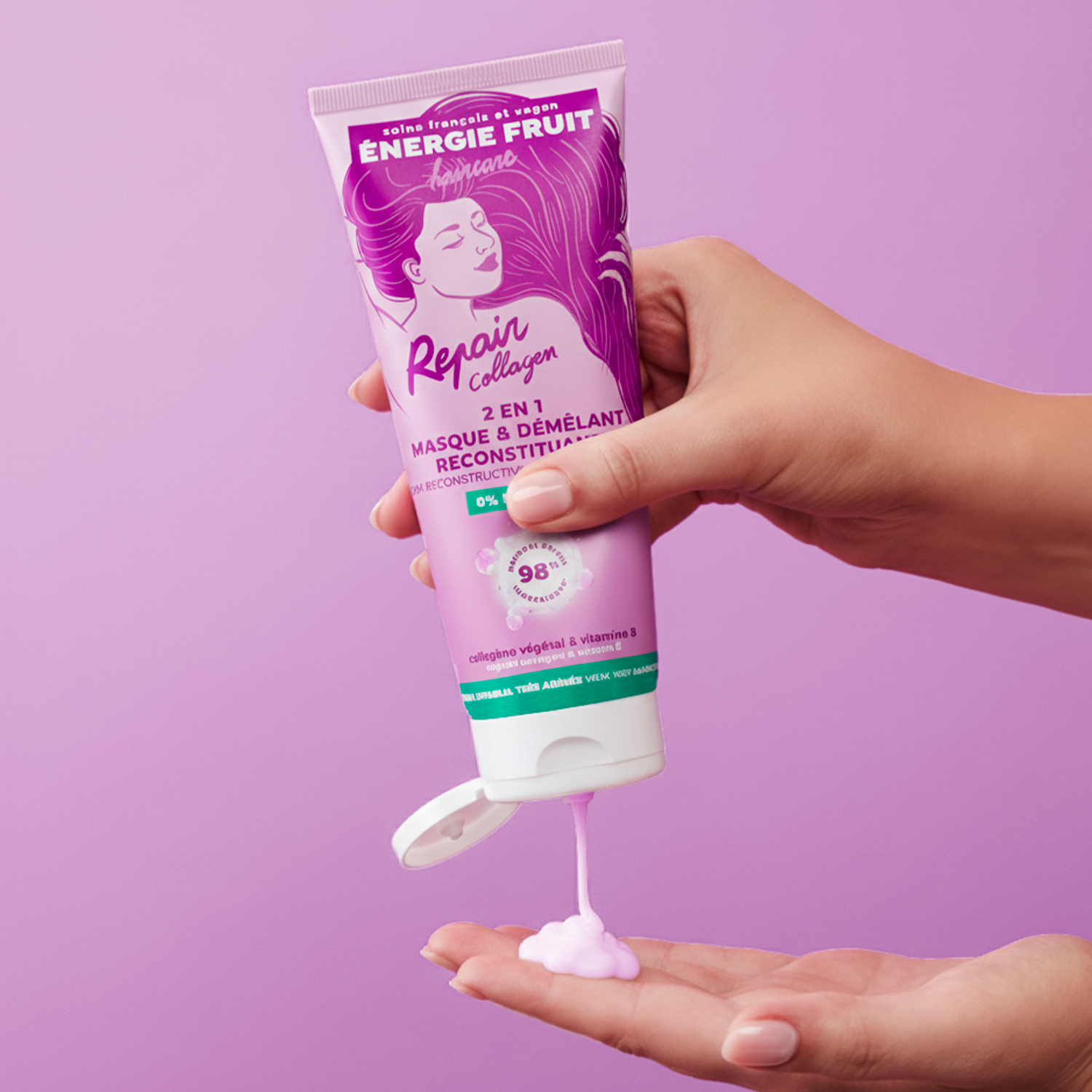 Repaired hair, even on the most damaged ends, with plant-based collagen and B vitamins so you never have to cut it again!