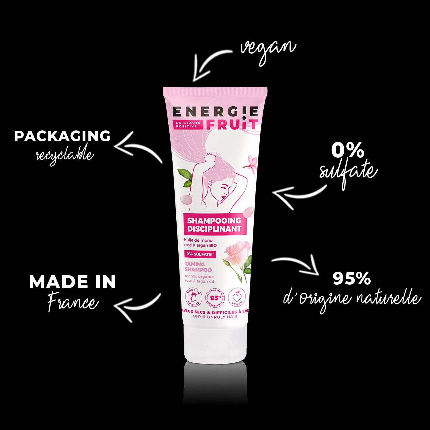 Testée dermatologiquement, au pH neutre, sans sulfates, silicones, colorants, ni paraben, cette formule convient aux cheveux secs, abîmés par les lissages à répétition. Dis adieu aux cheveux rebelles !