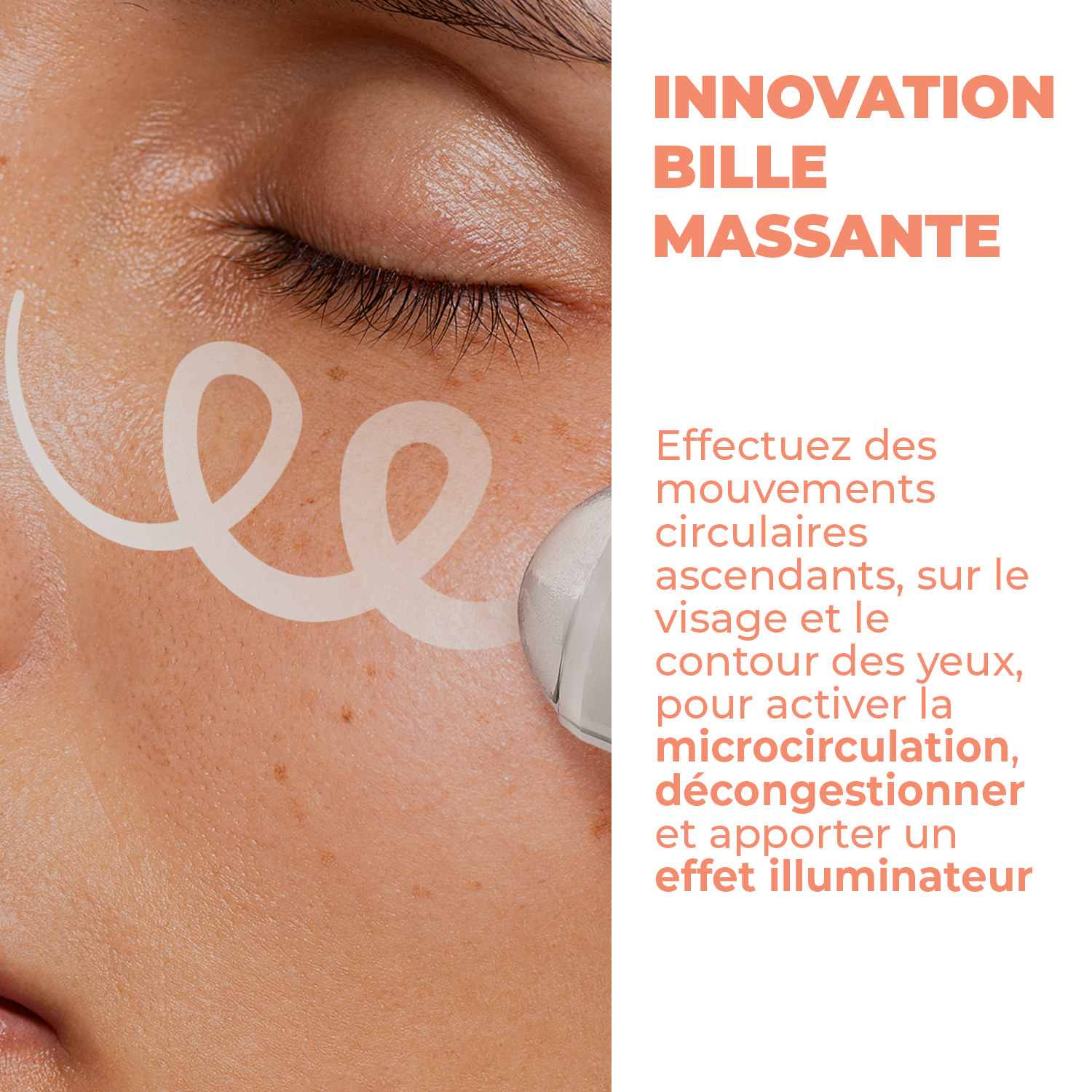 - Technologie Roll-On innovante : délivre la juste dose de produit, format pratique et application décongestionnante et liftante.